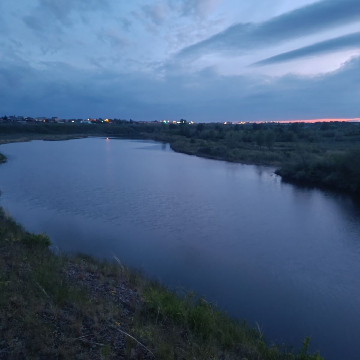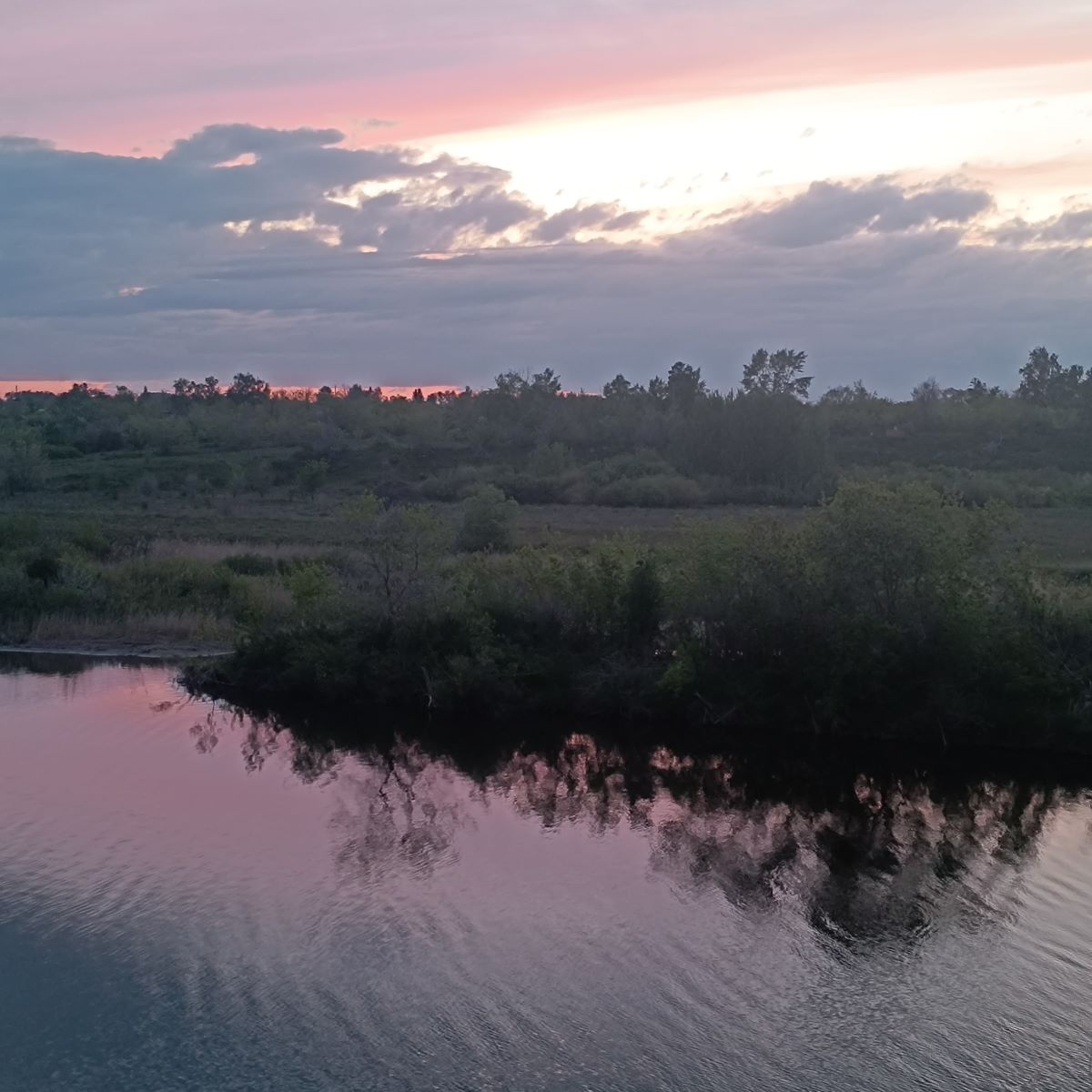 Вот еще один вариант заката на реке в конце весны и месяца мая. Такую красоту надо успеть заснять, иначе бывает раз… не успел. Вчера только не успел заснять красивый закат, пока прособирался. А закат как-то так быстро ушел за линию горизонта и наступил… Тот самый сумрачный серо-синий период, который называется. Сумерками – в этот час или мгновение весь окружающий нас мир. Постепенно исчезает за гранью перехода во тьму, а далее в ночь. А закат был очень зачетным, со множеством облаков на небесах. Думаю, что фотографии заката бы получились очень хорошими. Может, сегодня будет вновь красивый закат, тогда пойду к реке.