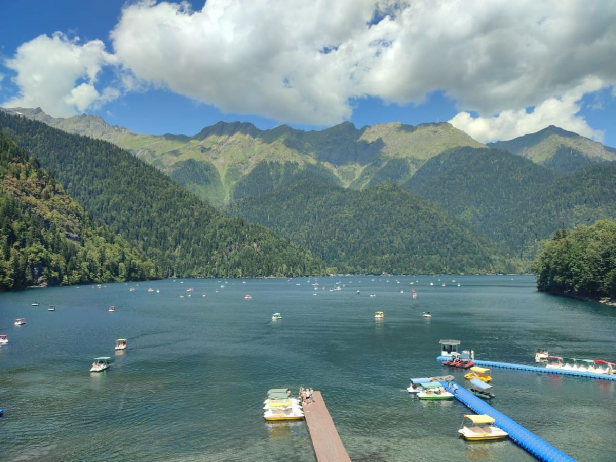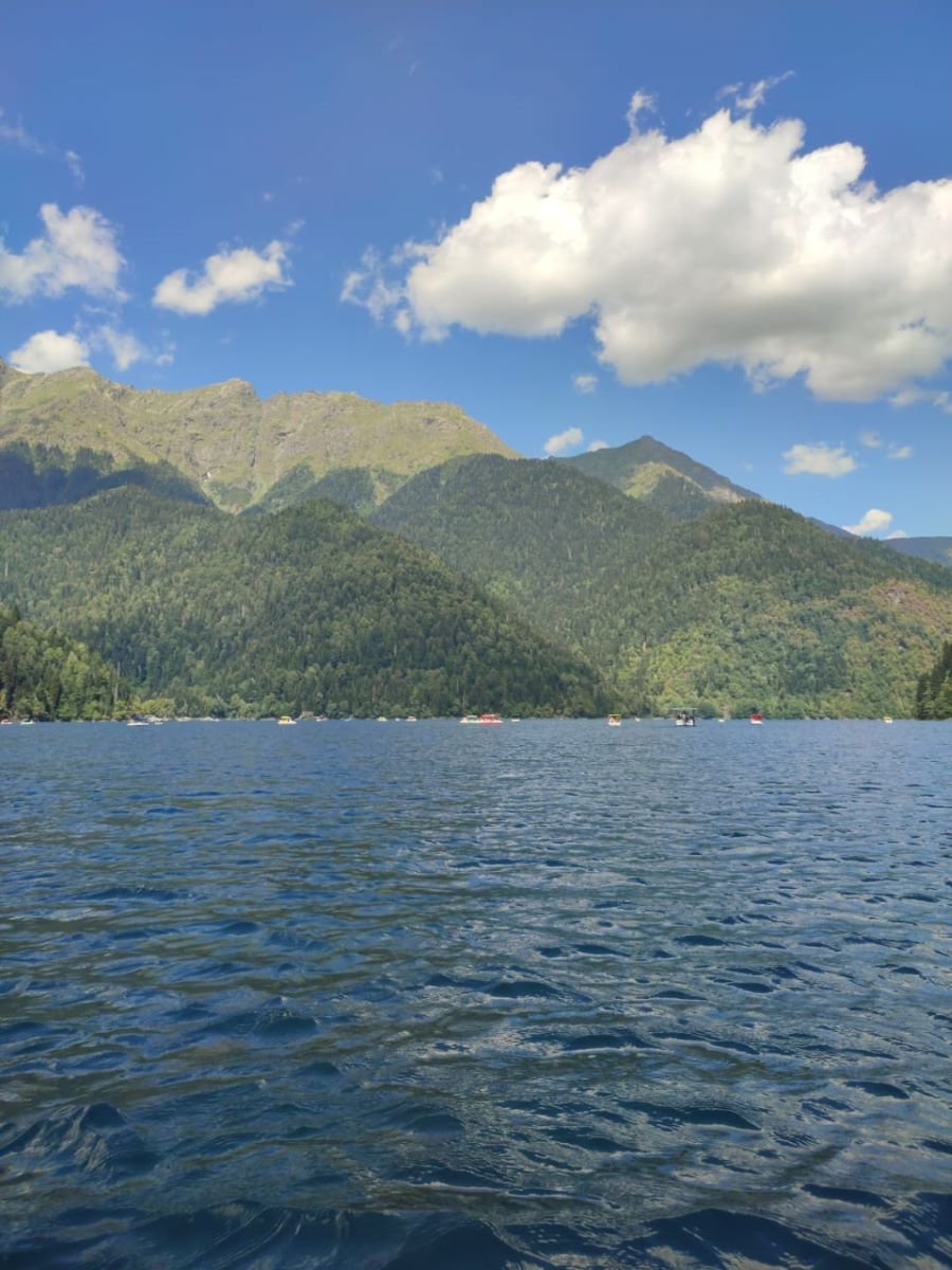 Только находясь на озере Рица, ты воспринимаешь красоту природы. И окружающего мира, где все не так, как мы привыкли видеть дома. Здесь горы, уходящие вершинами в небеса, да узкие высокие ущелья. Которые, словно какие-то исполины прорубили сквозь монолит гор. Но та картина, которая на озере Рица открывается перед тобой – это… Все то, что опрокидывает навзничь душу любого (как бы ни упасть). Но каждый из нас воспринимает красоту по-разному, да и восторг. Кто-то от изумления «столбенеет», кто-то начинает громко кричать.
