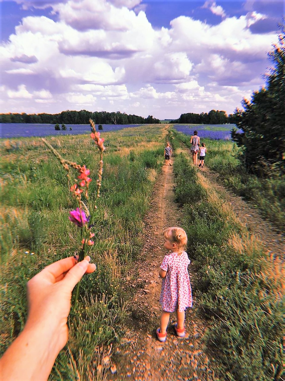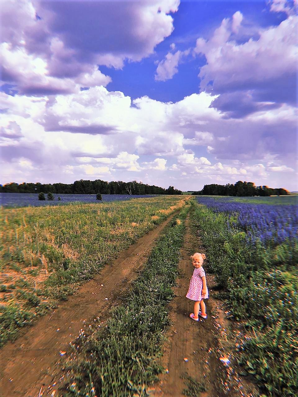 Фотография из жанра – Пейзаж. Летний и фантазийный пейзаж с голубыми цветами. Детям было очень интересно бегать и играть на природе и на этом большом поле с голубыми цветами. Какая красота царит везде, куда ни глянь. Такая картина – мы все были как в сказке. Лето – это еще и самое красивое время года. Фотографии сделаны в программе HUJI. Новой популярностью в фотографии пользуется эффект пленочной камеры. Это программное обеспечение HUJI позволяет запечатлеть незабываемые моменты, как в старые добрые времена на пленочную камеру. Она позволяет делать яркие и выразительные снимки, стилизованные под фотографии прошлых лет. Мне нравится эта программа, цветы в ней особенно красивы. Например, как у меня – получилась фантастическая и нереальная красота природы и летнего пейзажа с детьми и голубыми цветами на поле. Такой фоторепортаж.