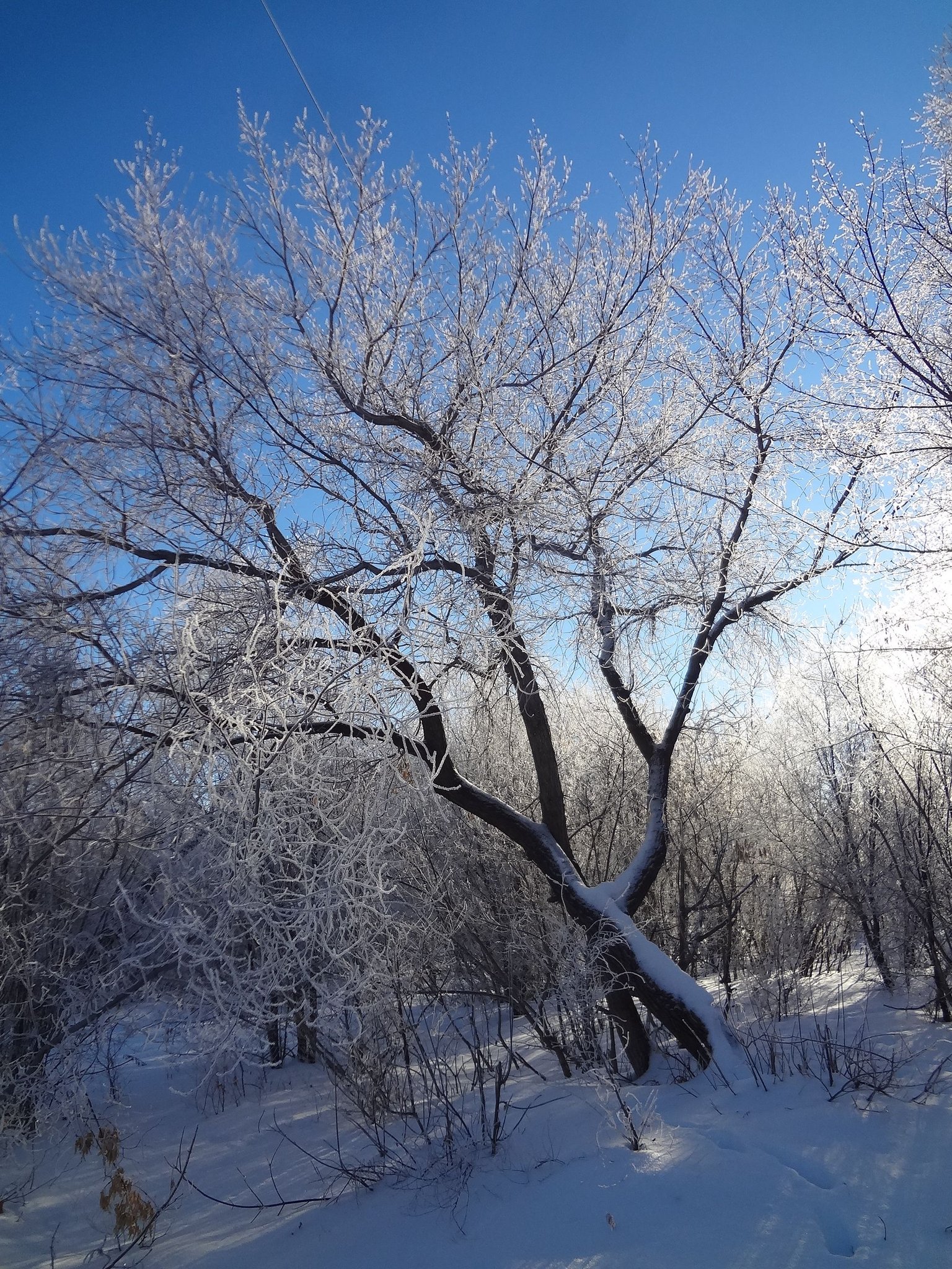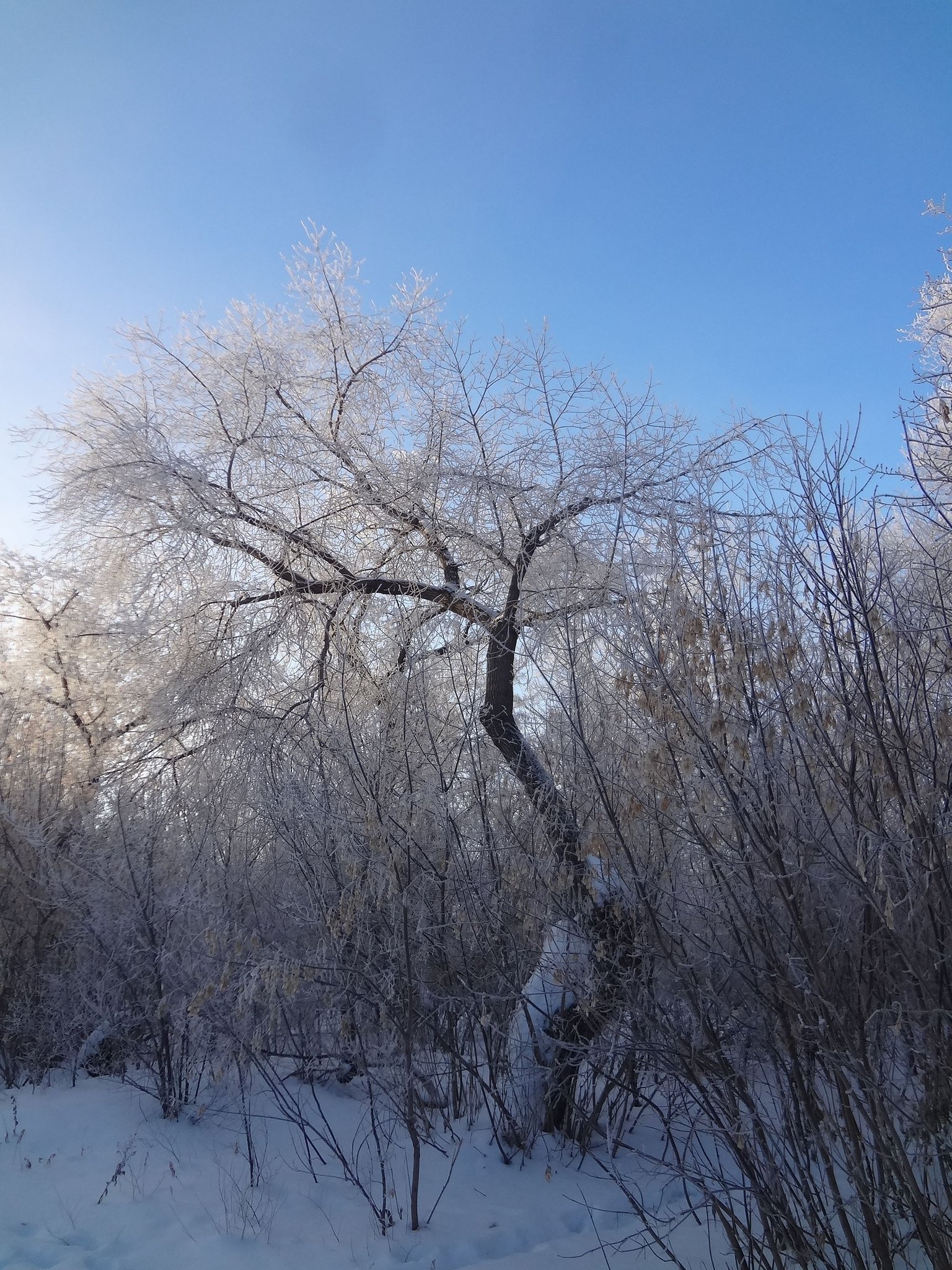 И вот перед нами на фотографии еще одно большое дерево. Прекрасные мгновения из фантастической сказки продолжаются. Тишина, мороз, кругом иней на деревьях и яркое зимнее солнце.