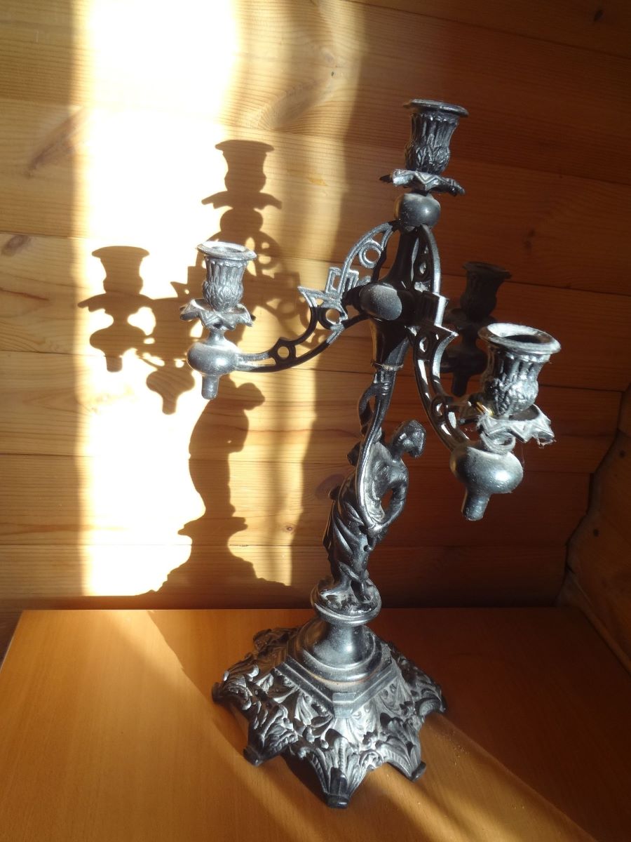 Вот интересная тень от канделябров в доме, словно в другом времени. Любой из нас легко может тоже увидеть тень прямо с утра или вечером. Эта красота, как на фото осталась у меня на память в семейном архиве.