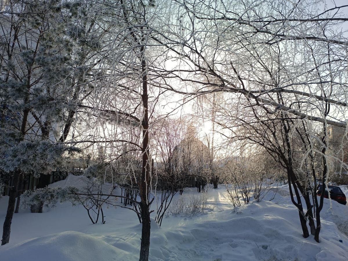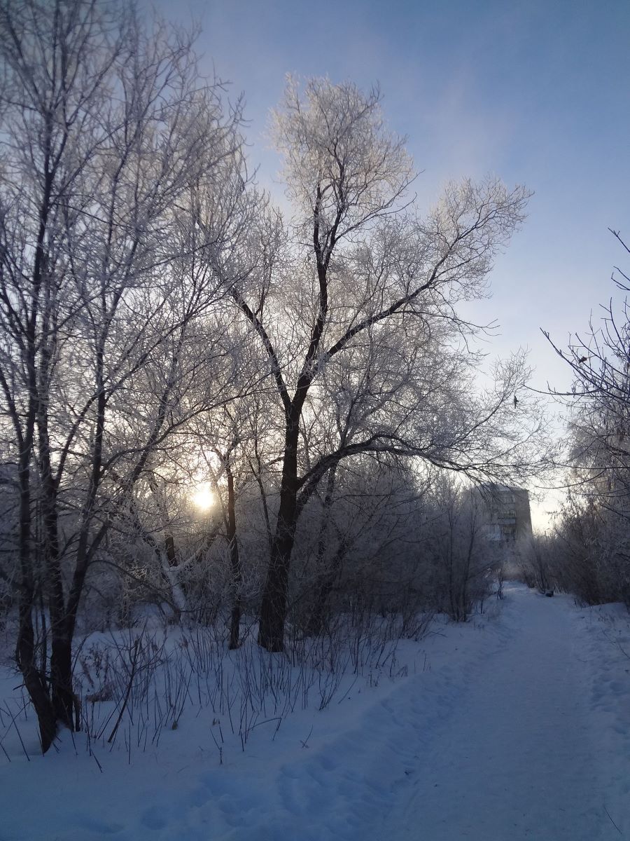 Сегодня я решил еще раз показать удивительно красивые фотографии зимы и утреннего восхода солнца. После нескольких теплых январских дней, когда температура опустилась до минус 20°C, у нас были морозы до минус 30°C. И вот сегодня утром на прогулке меня встретила такая красивая зимняя картина с инеем на деревьях и кустах. И, что тут скажешь, когда такая красота встречается тебе на каждом шагу? Нужно срочно доставать фотоаппарат (или смартфон) и фотографировать удивительную по своей красоте природу в это зимний период, которая предоставила такую возможность, в качестве подарка фотографу.