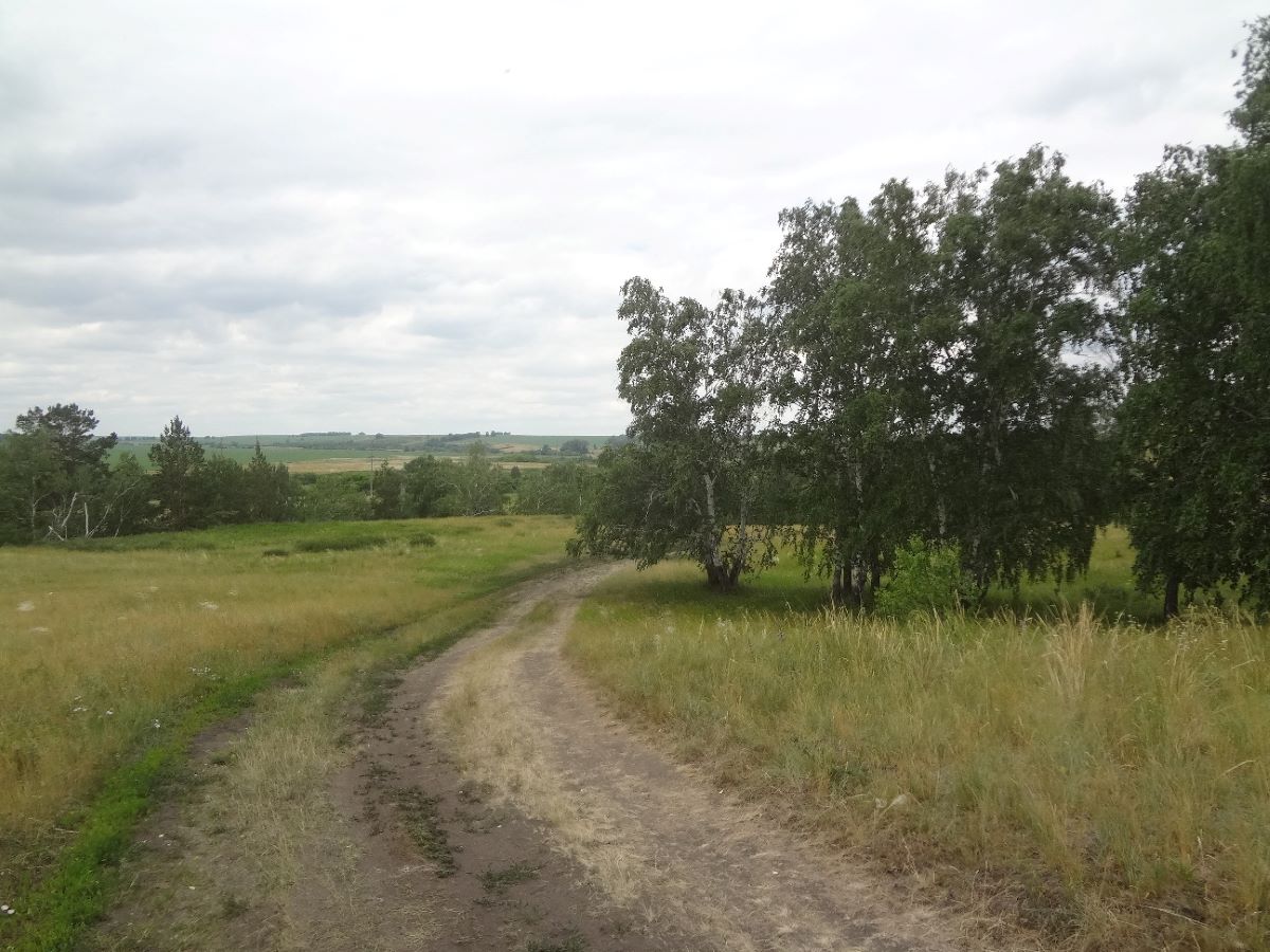 Старая дорога в лесу, по которой стали меньше ездить и ходить пешком. Дорога, видимо, была заброшена год назад или два? И она начала зарастать травами. Скоро она совсем исчезнет из поля зрения.