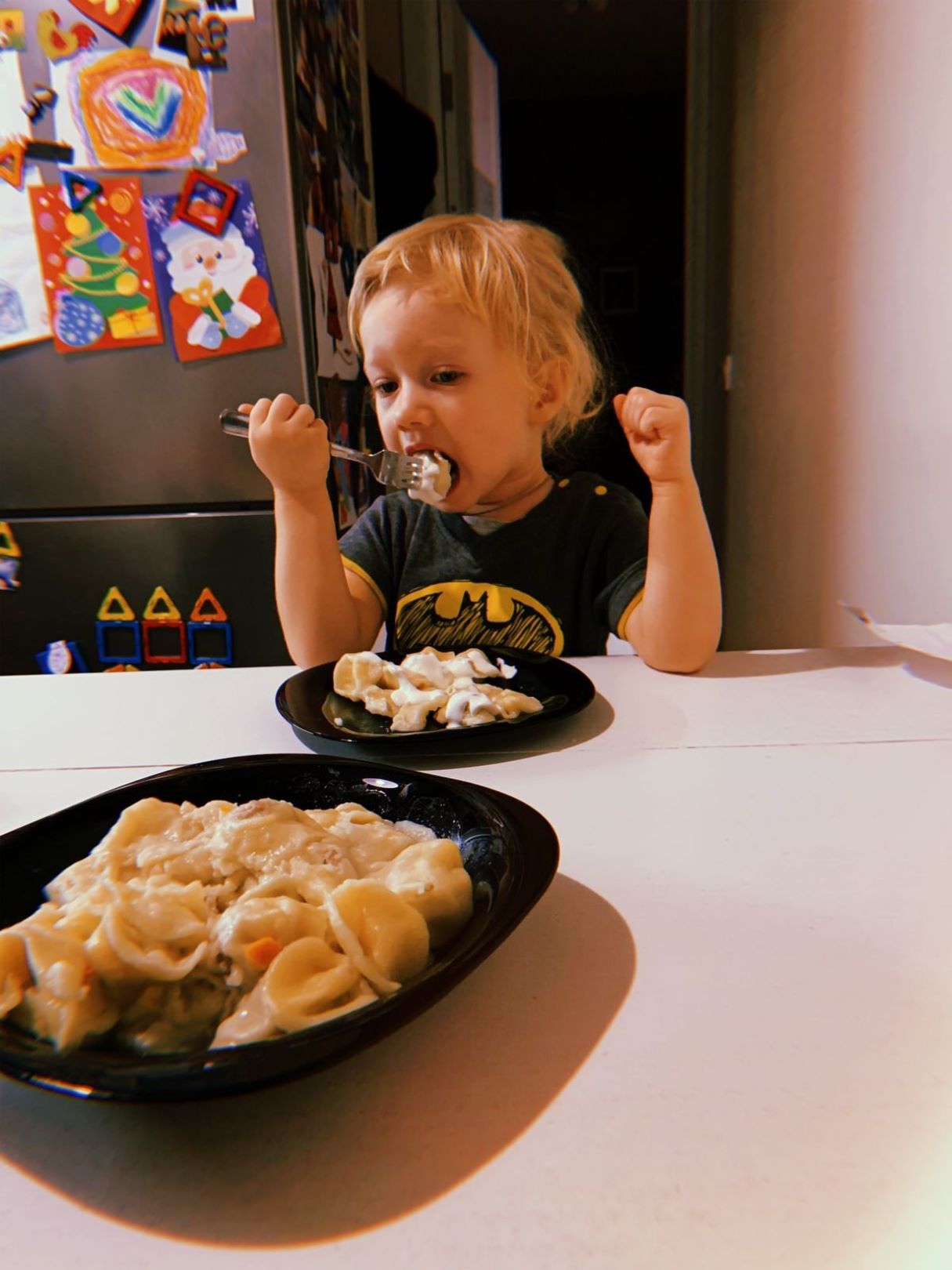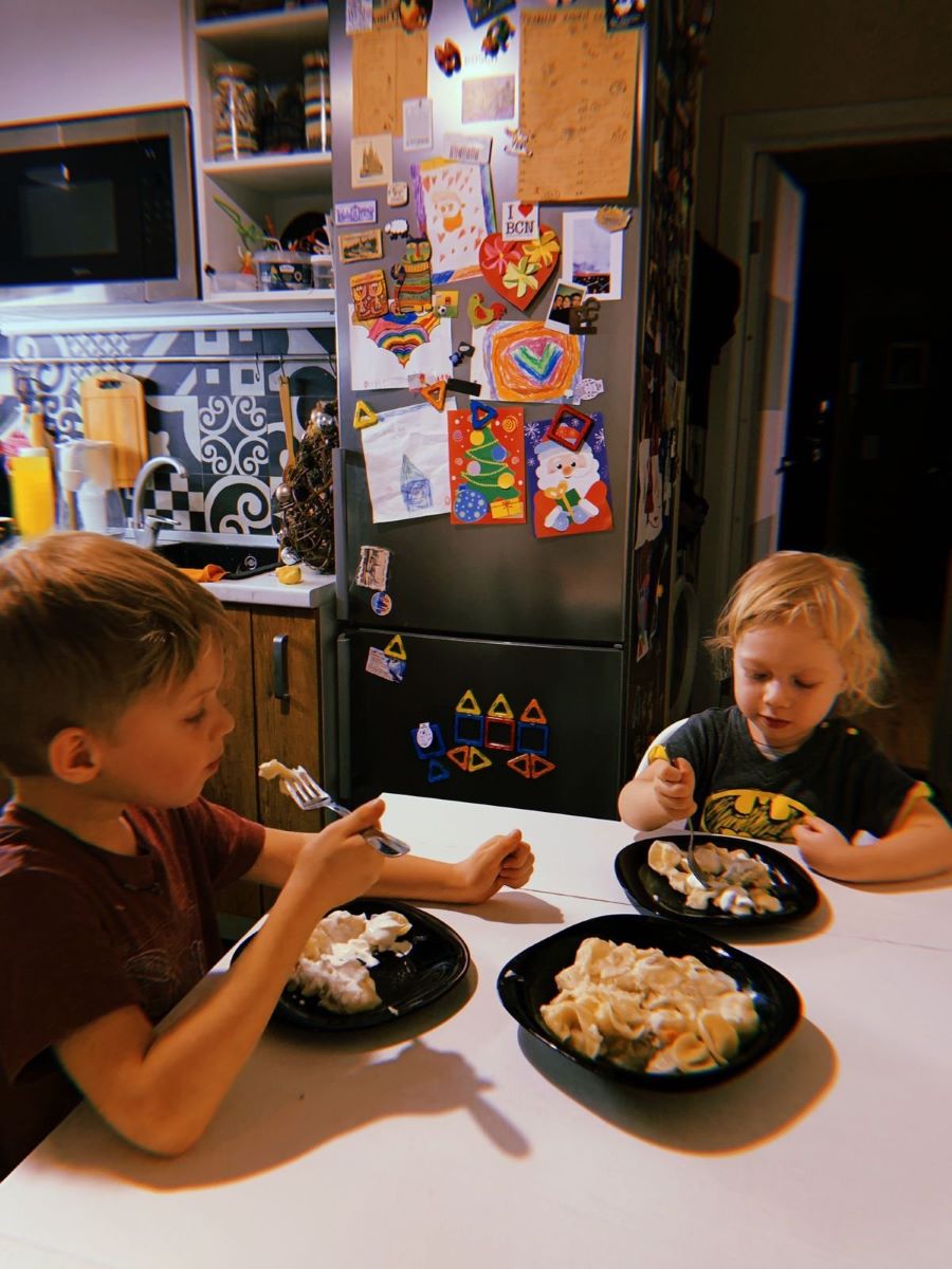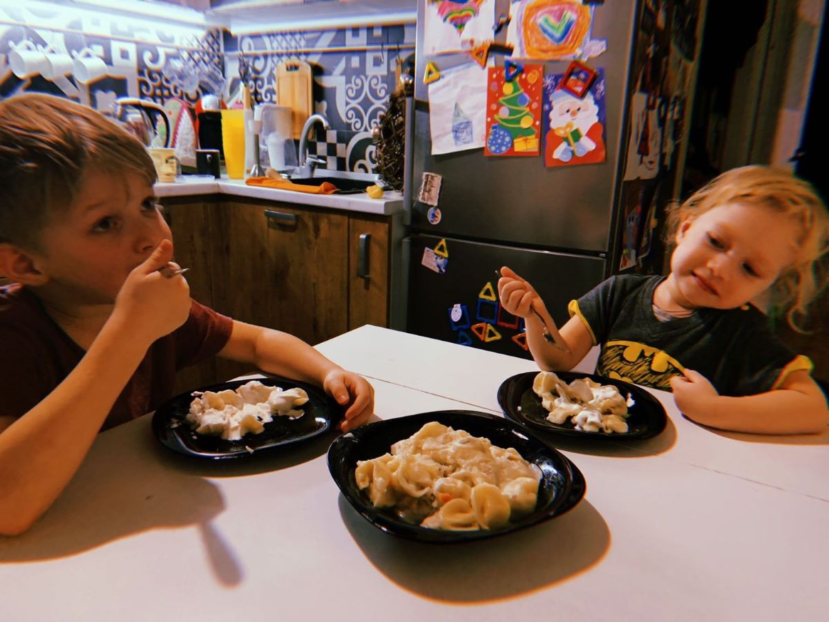 Дети с такой радостью кушали пельмени (и пиццу), что сам приготовили. Это же такое счастье, что именно они сами все приготовили для ужина. И дети спели песенку, радуясь тому, что у них все хорошо получилось.