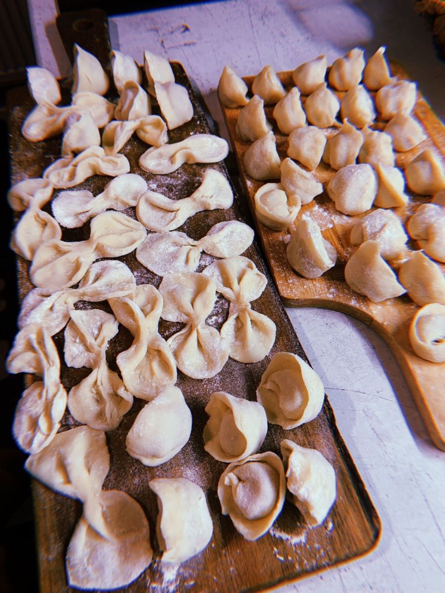 И вот какие красивые стали получились пельмени в итоге обучения. И бантики, которые мы сделали просто из теста, что тоже кушать. Кстати, дети всегда любят кушать эти бантики, как и сами пельмени.