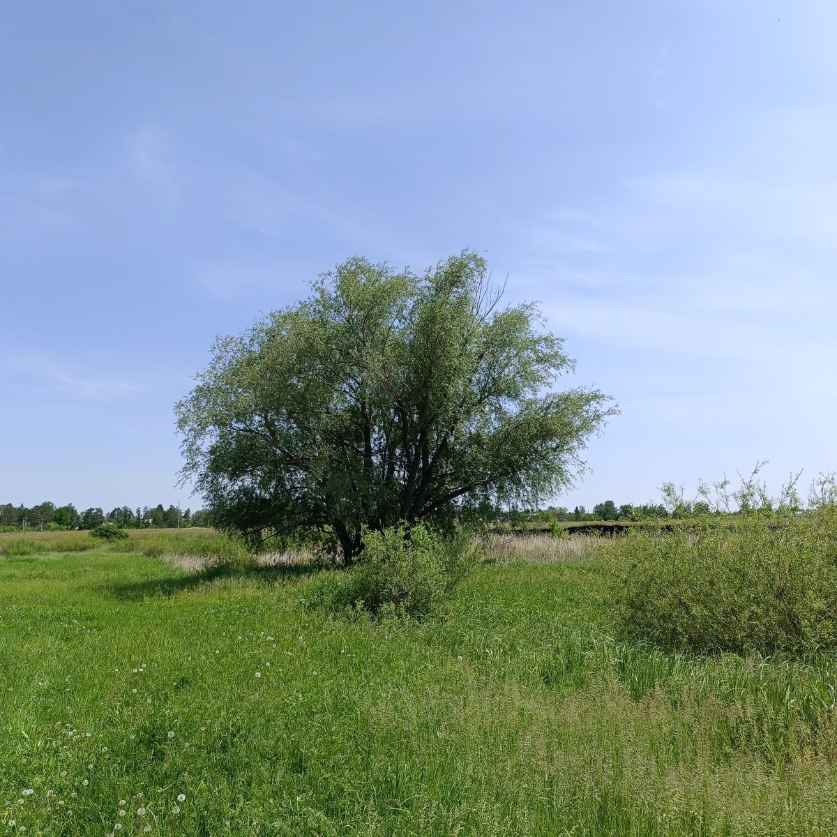 Летний пейзаж, когда перед нами вот такая картина, где видим. Совсем одинокое дерево среди степной равнины или на берегу. Берегу реки, хотя она немного виднеется вдалеке тонкой нитью. И вся эта удивительная красота природы находится под небом. Совсем чистым небосклоном, который словно купол над нами. Но надо идти вперед, где еще ожидает так много интересного.