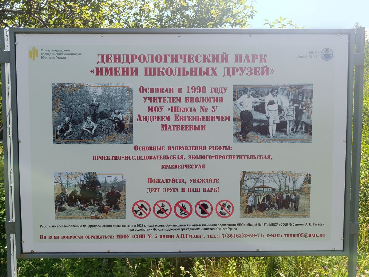Так вот и получается, что с 1990 года парк был заложен в школе. Но информации нет про него – причем, вообще, совсем нигде нет. Думаю, это большое упущение со стороны руководства школы. Надо, как можно, больше рекламировать это замечательное место. Приглашать и проводить для всех желающих экскурсии в парке. Основателя дендрологического школьного парка я знал лично. Были знакомы совсем по другому парку, который он также хотел. Возродить и сделать таким, каким он был в самом начале 20 века. У нег были даже какие-то документы про старый городской парк. И в этих документах было прописано, какие там были растения.