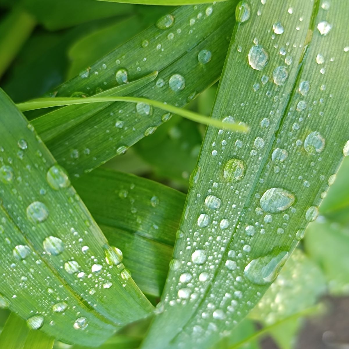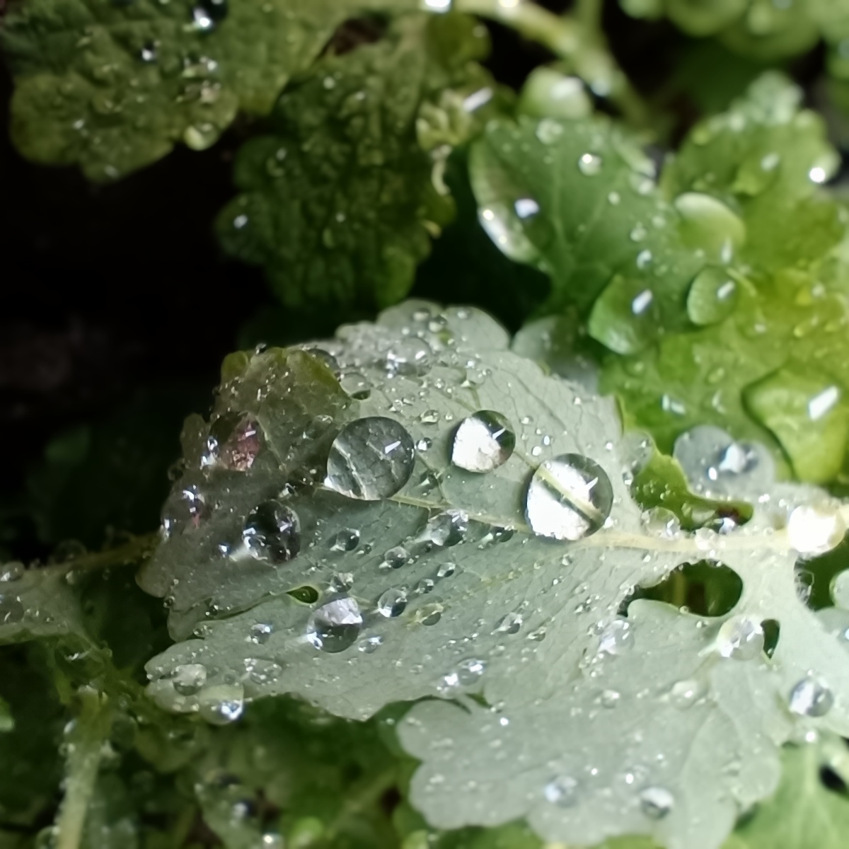 Когда капель много, то они смотрятся, как россыпь. Драгоценных камней, которые набросили на листья. На цветах и лепестках тоже красиво капли выглядят.