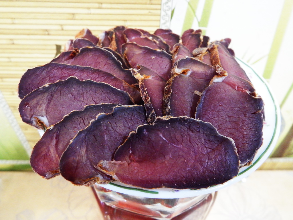 Рецепт этот существует довольно долго, так как вяленым мясом запасались люди еще с давних времен. Оно не портится и в дальнейшем может использоваться в любых блюдах - в супах, тушенках и сыром виде.