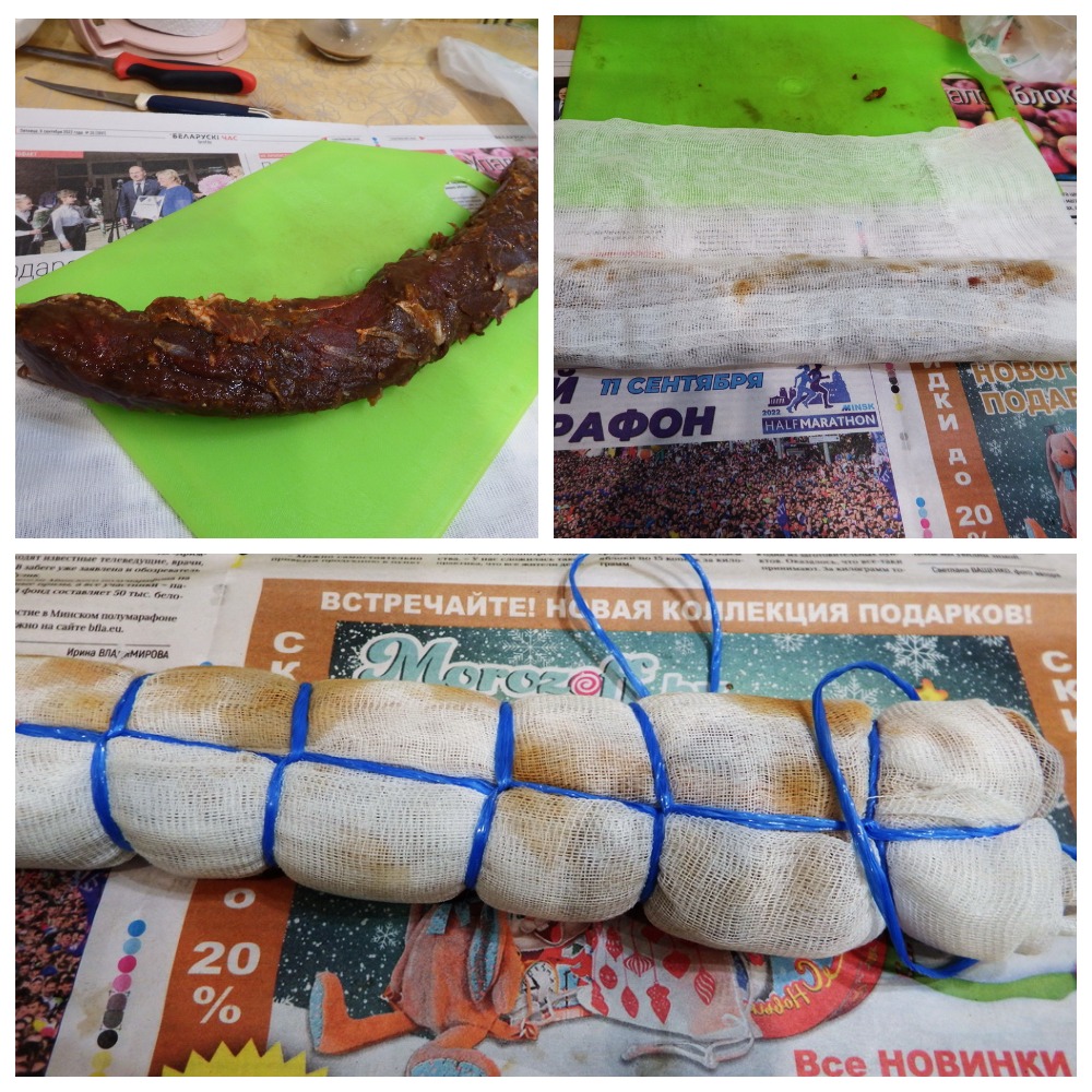 Берем марлю, каждый кусочек заворачиваем и обвязываем шпагатом.
