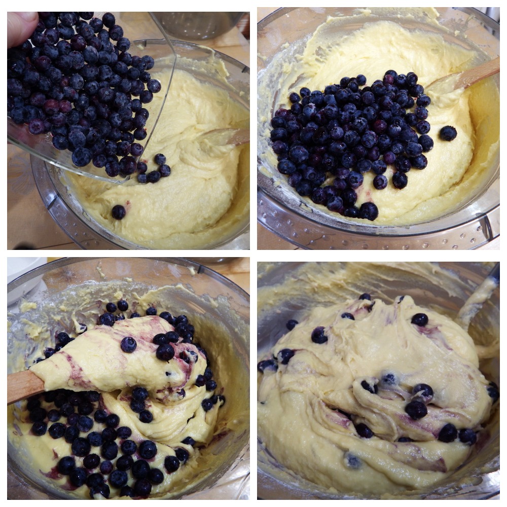Они могут быть замороженными, но их надо разморозить на сите чтобы ушла вся влага. Осторожно поместить их в тесто и смешать круговыми движениями.