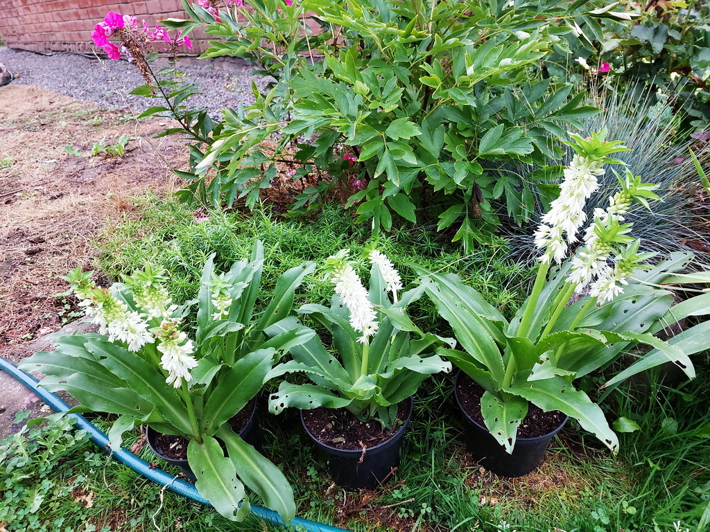 Конечно же я пересадила эти эукомисы в садовые вазы.